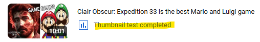 Here are the three thumbnails I tested for my most recent video on Clair Obscur: